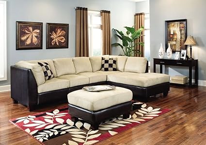 Amazon Com Sectional Sofa Chaise Beige Microfiber Dark