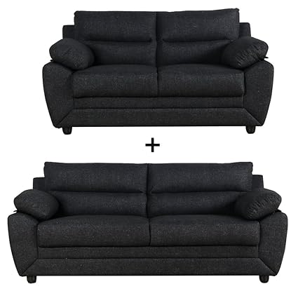 Moloo Roma Ensemble Canapes Fixes 3 2 Places Tissu Noir 202 X 82 X 89 Cm