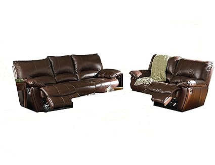 Amelia Modern Brown Genuine Leather Recline Sofa Couch Loveseat Set Living Room