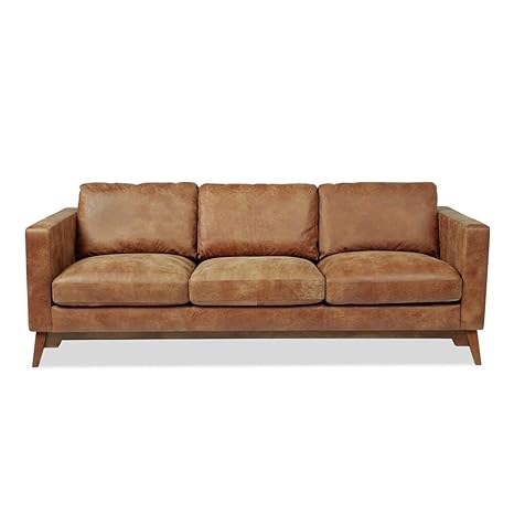 Amazon Com Rustic 89 Inch Tan Leather Sofa Kitchen Dining