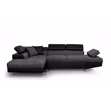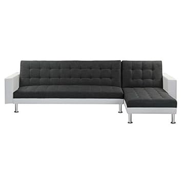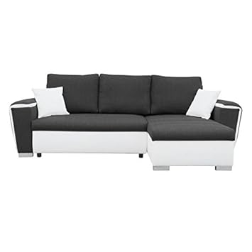 Generique Futura Canape D Angle Droit Convertible En Bois Massif 4 Places Simili Tissu Noir Gris Contemporain L 272 X P 1
