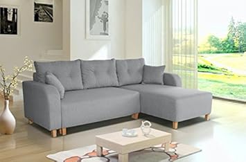 Canape D Angle Droit Convertible Avec Coffre Stockholm Tissu Gris Clair