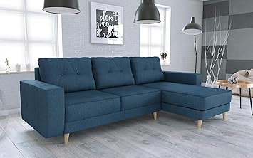 Bestmobilier Viking Canape D Angle Reversible Convertible Style Scandinave Tissu Couleur Bleu