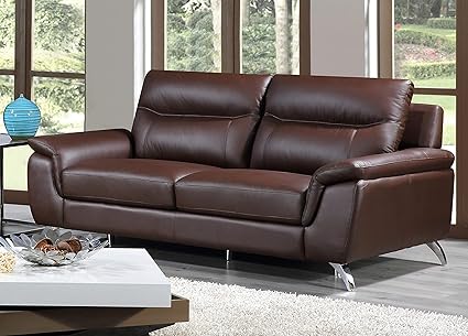 Cortesi Home Chicago Genuine Leather Sofa Loveseat Set Brown