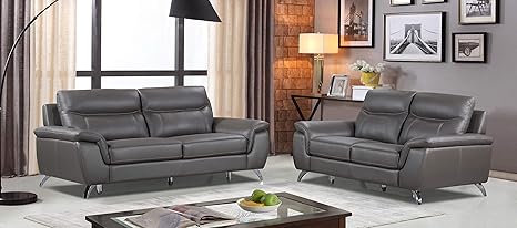 Cortesi Home Ch 3chicago2032 2chicago2032 Chicago Leather Sofa Loveseat Set Sofa Loveseat Dark Grey