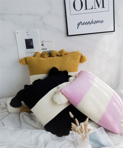Acheter Livraison Gratuite Confortable Coton Nordique Tricote Raye Motif Home Decor Housse De Coussin Canape Canape Salon Taie D Oreiller Avec Frange
