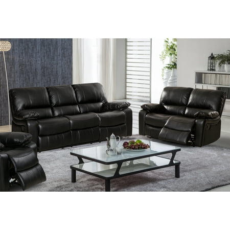 Vacherie Contemporary Black Color Faux Leather Reclining Sofa And Loveseat Set