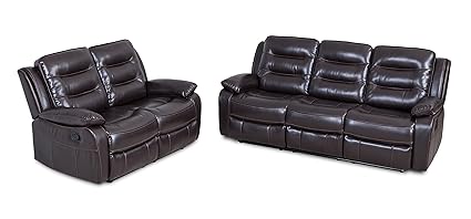 Dark Brown Bonded Leather Reclining Sofa And Loveseat