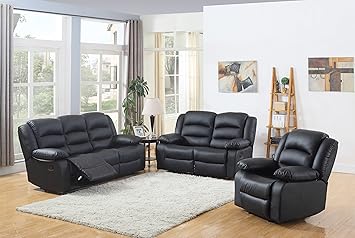 Amazon Com 3pcs Modern Black Bonded Leather Motion