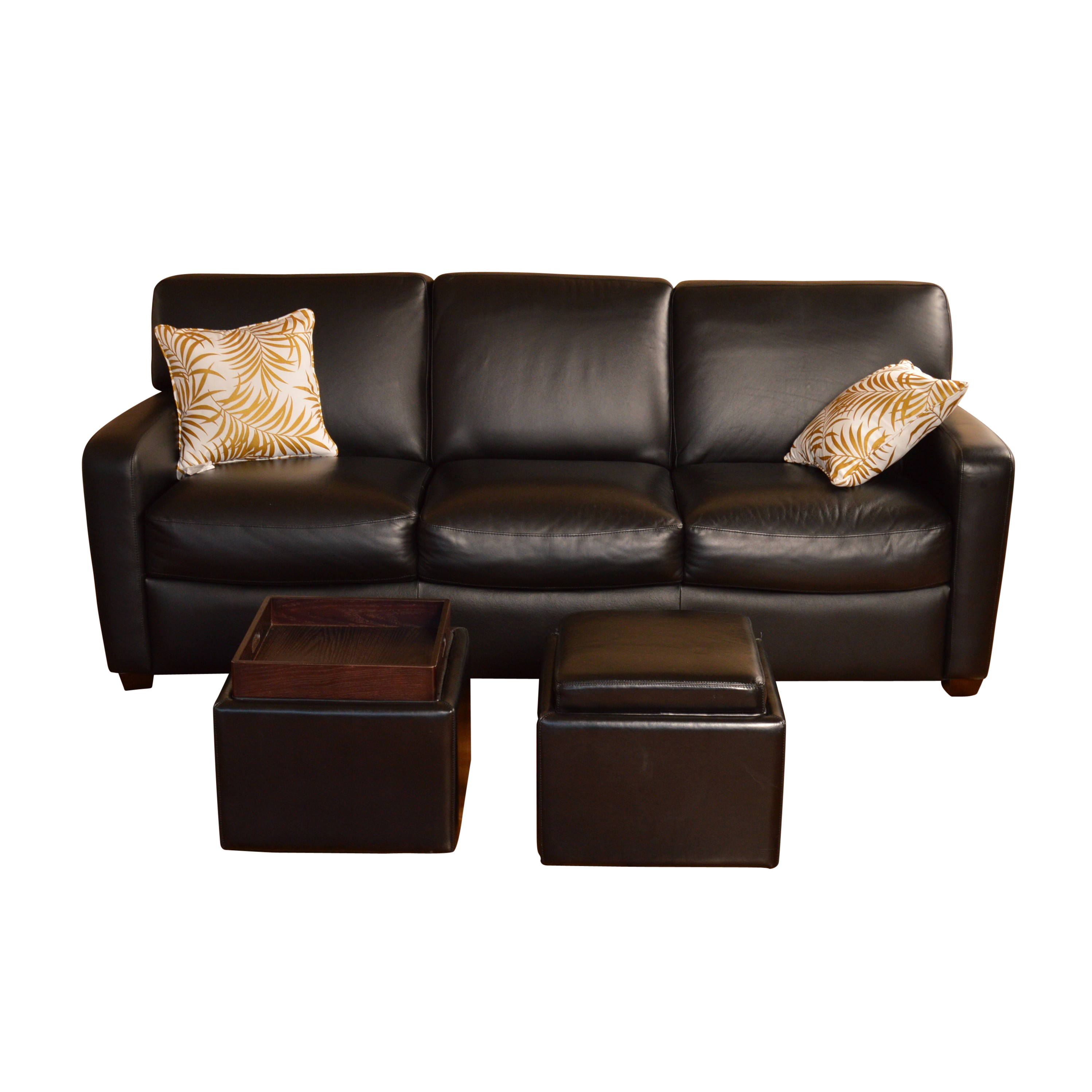 Black Leather Sofa And Ottomans