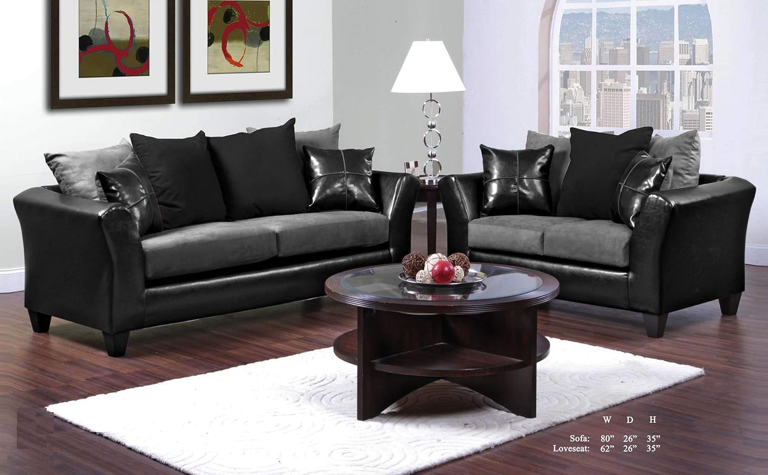 Gtu Furniture 2 Tone Microfiber Sofa Loveseat Set 5 Colors Available Black