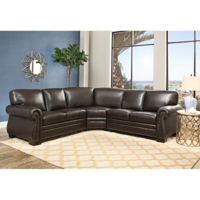 Barcelona Top Grain Leather 3 Piece Sectional Sofa