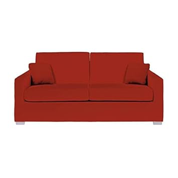 Michigan Canape Droit Convertible 3 Places Tissu Rouge