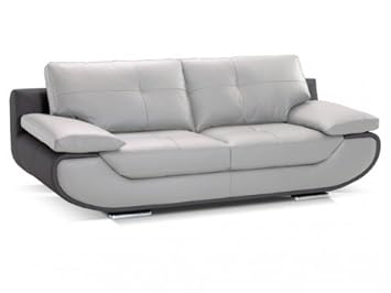 Canape 3 Places Cuir Luxe Orgullosa Bicolore Gris Et