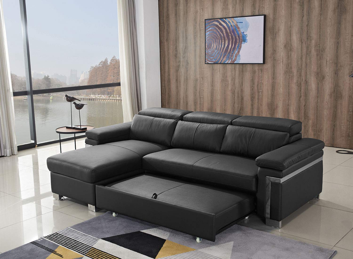 Details About Contemporary Black Leather Sectional Sleeper Futon Corner Sofa Bed Living Room