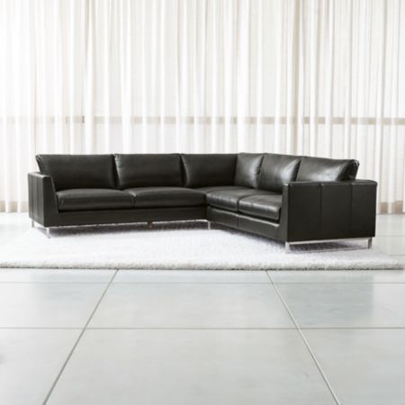 Tyson Leather 2 Piece Left Arm Corner Sofa Sectional With Stainless Steel Base Crate And Barrel
