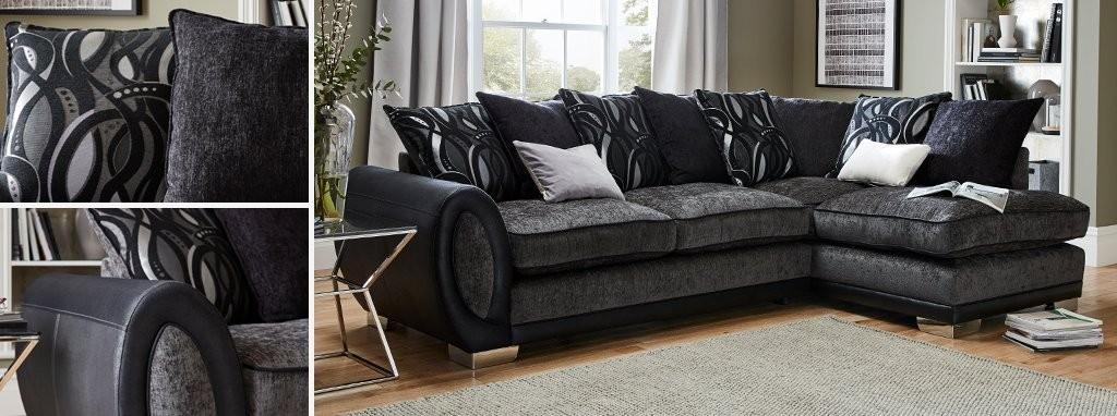Farrow Chenille Fabric Corner Sofa 2 3 Seater Swivel Chair In Black Grey Corner Sofa