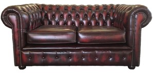 Details Sur Canape Chesterfield En Cuir Veritable Deux Places Rouge Antique