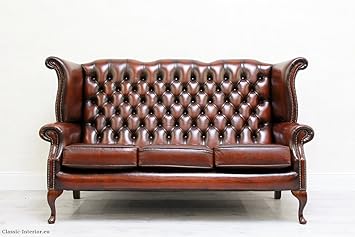 Inconnu Chippendale Chesterfield Canape En Cuir Vintage