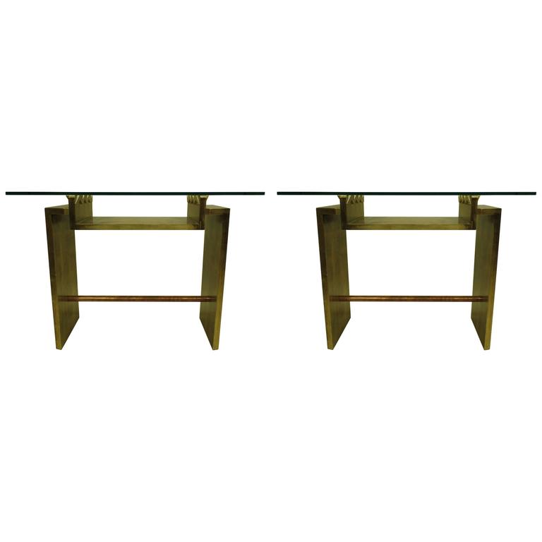 Two Unique Italian Postmodern Gilt And Copper Cantilevered Consoles Sofa Table