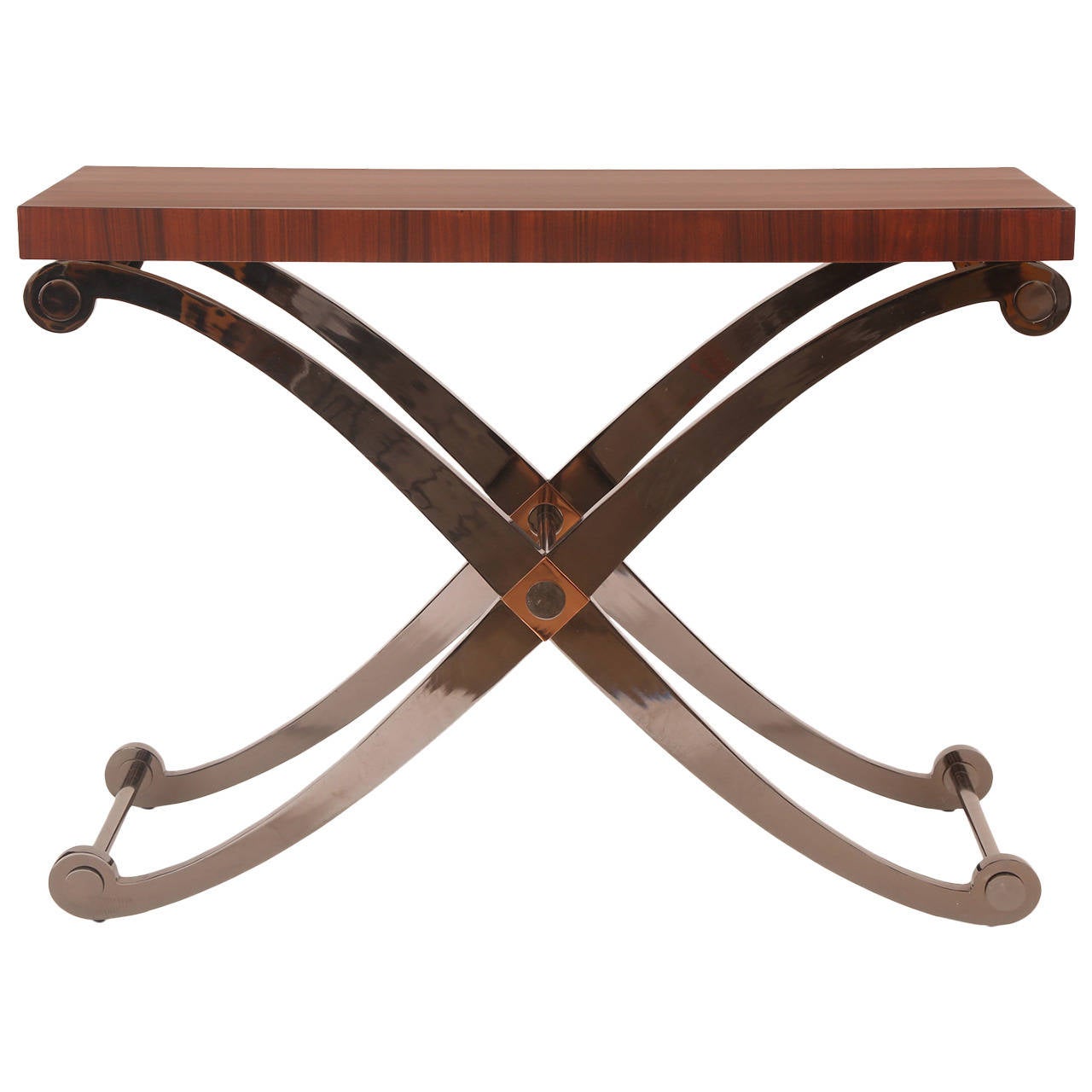 Fabulous Steel Copper And Walnut Console Or Sofa Table
