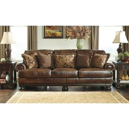 Ashley Furniture Signature Design Mellwood Leather Sofa Traditional Walnut
