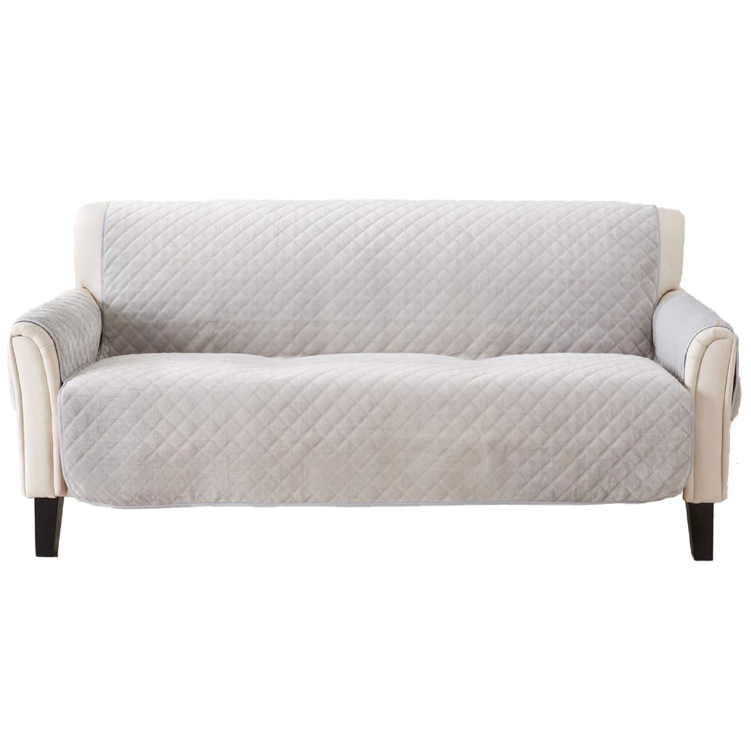 Great Bay Home Velvet Furniture Protector Stain Resistant Machine Washable Brooklyn Collection Sofa Grey
