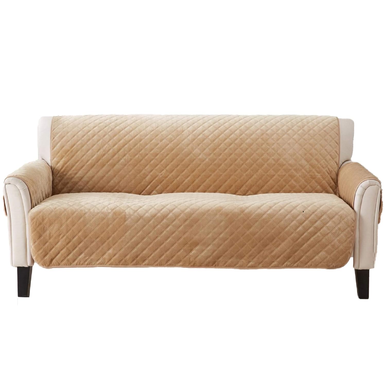 Great Bay Home Velvet Furniture Protector Stain Resistant Machine Washable Brooklyn Collection Sofa Warm Sand