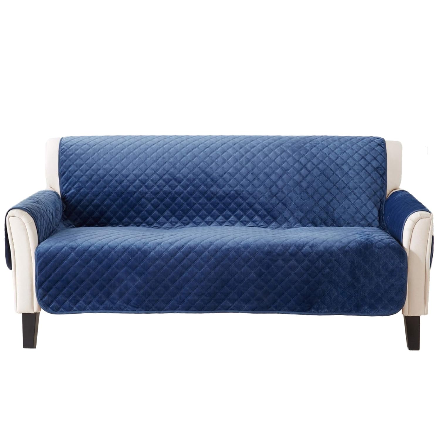 Great Bay Home Velvet Furniture Protector Stain Resistant Machine Washable Brooklyn Collection Sofa Dark Denim Blue