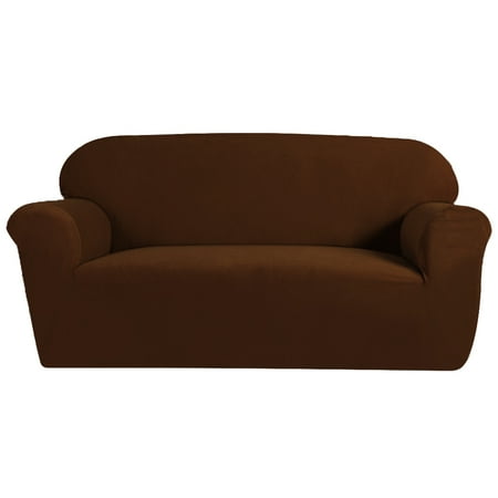Grand Linen Micro Suede Solid Chocolate Brown Sofa Slipcover 1 Piece Couch Cover