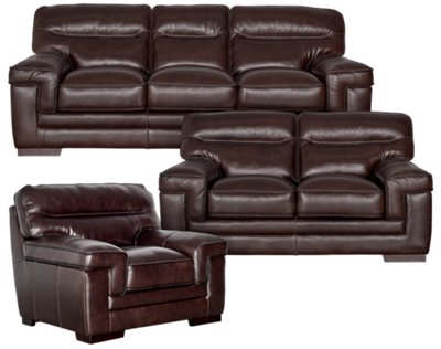 Klaussner Alexander Leather Sofa Chair Set In Pony Brown