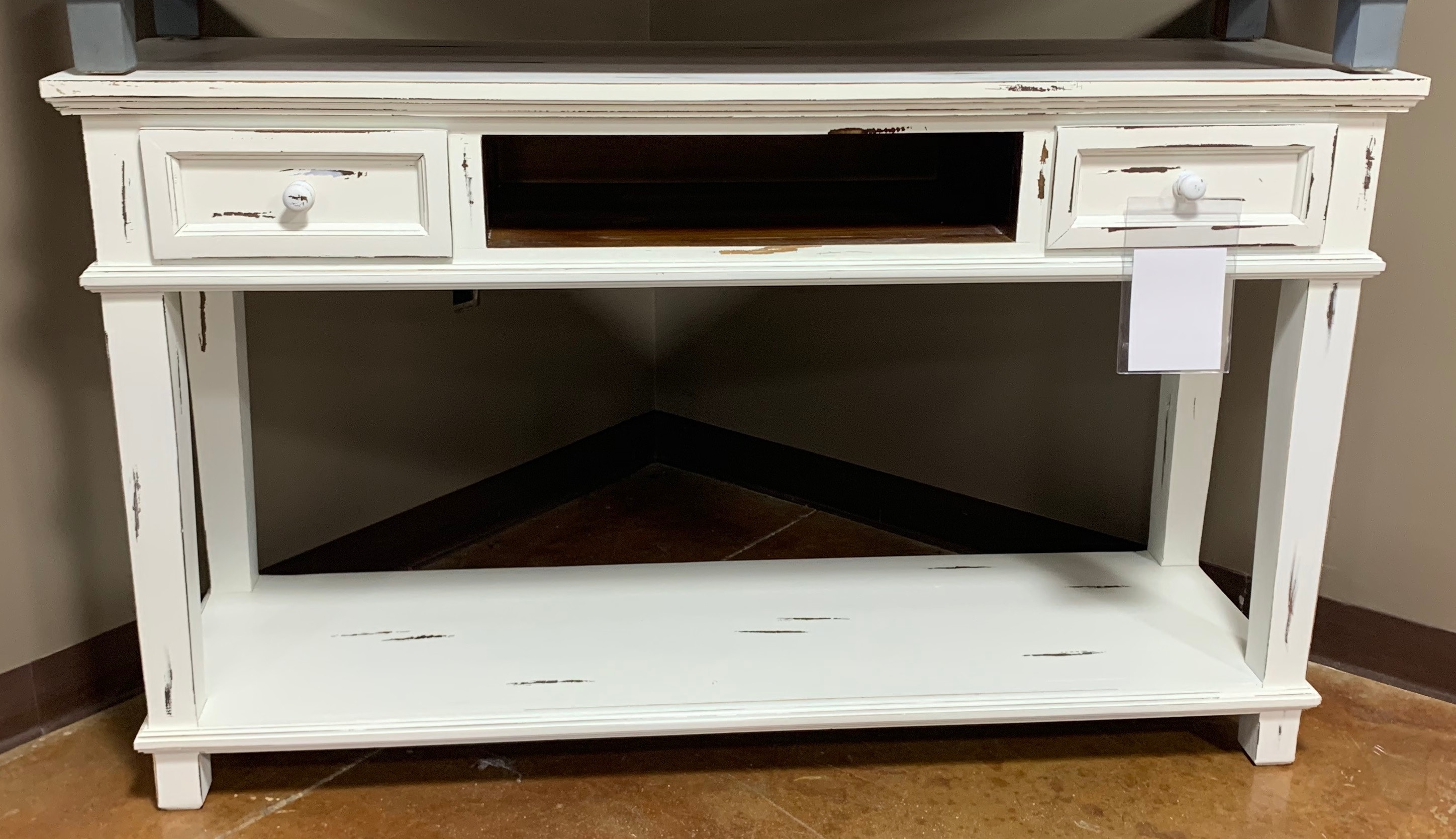 Two Drawer Sofa Table With Shelf Antique White