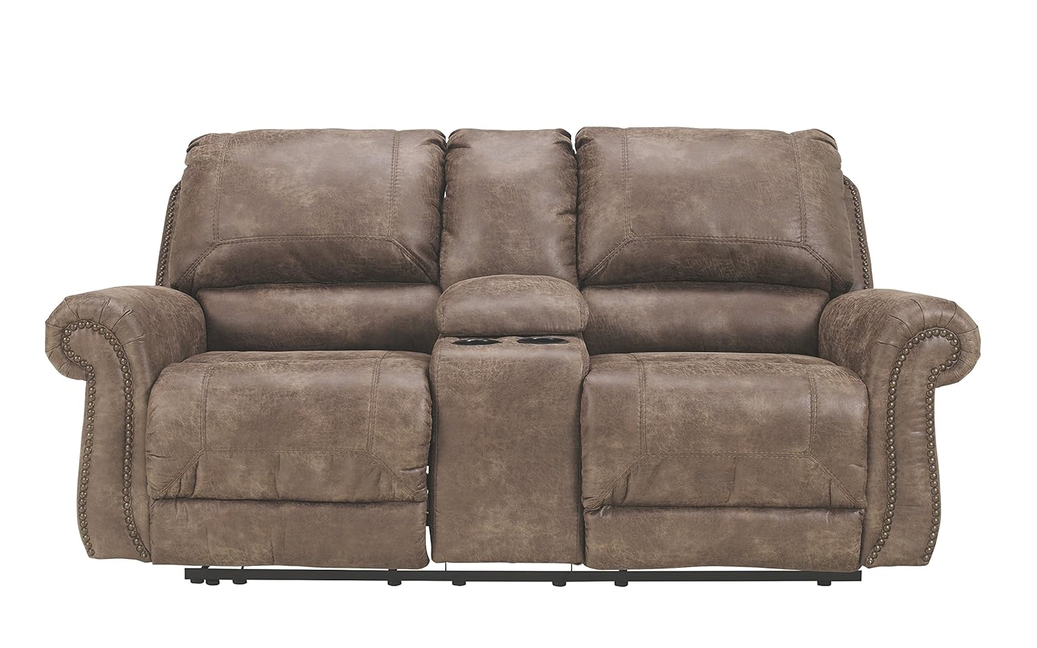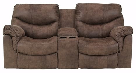 Ashley Furniture Signature Design Jayron Reclining Loveseat Double Storage Console Harness Brown