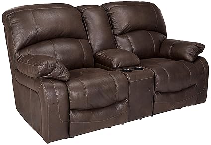 Ashley Furniture Signature Design Alzena Recliner Loveseat With Console Manual Reclining Couch Gunsmoke Brown