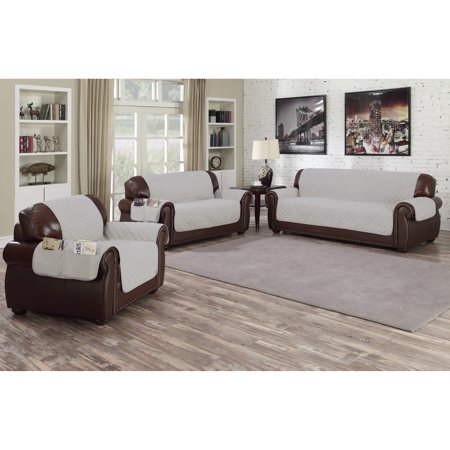 Reynold 110 In W X 75 In L Reversible Water Resistant Microfiber Sofa Cover With Pockets In Silver Black