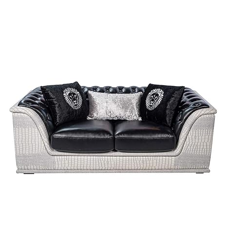 Versace Style 3 Piece Living Room Sofa Set Black Silver