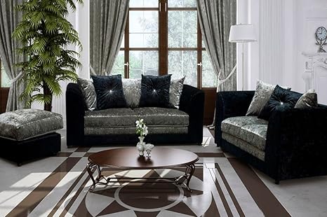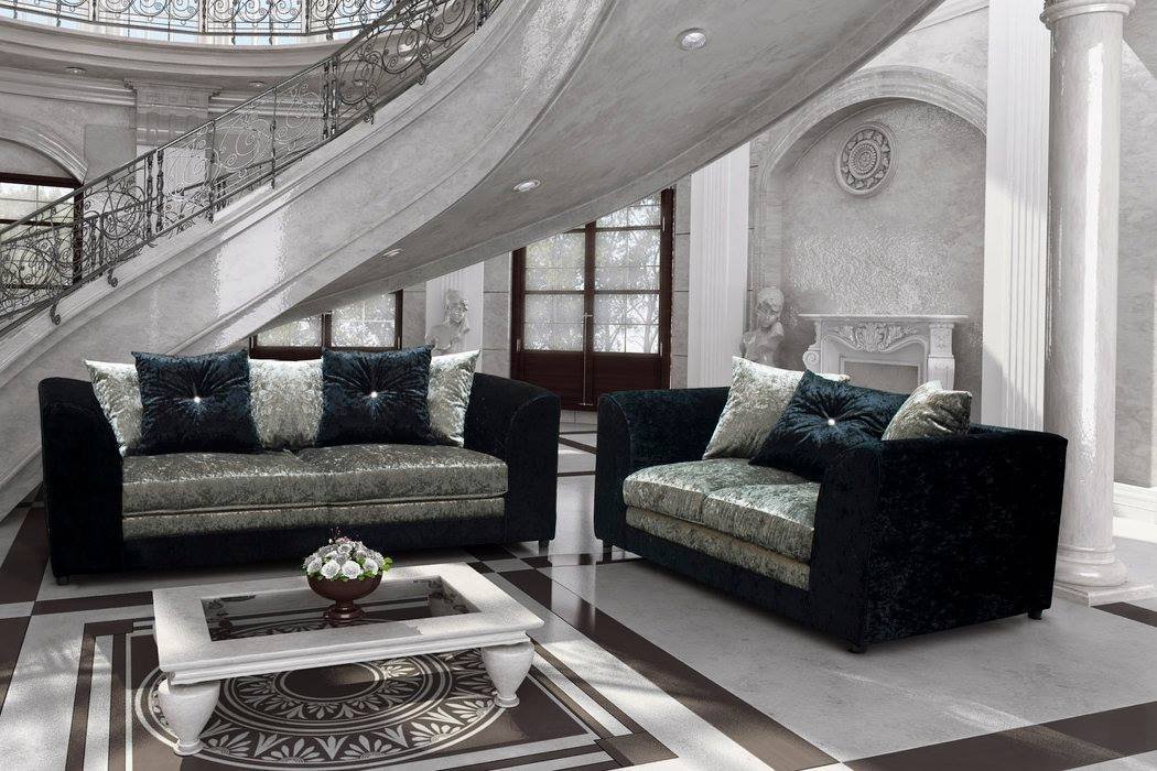Belle Dior 3 2 Seater Sofa Set Crushed Velvet Fabric Black And Silver