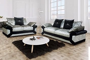 Vargas Crushed Velvet Fabric 3 2 Seater Sofa Set Black And Silver