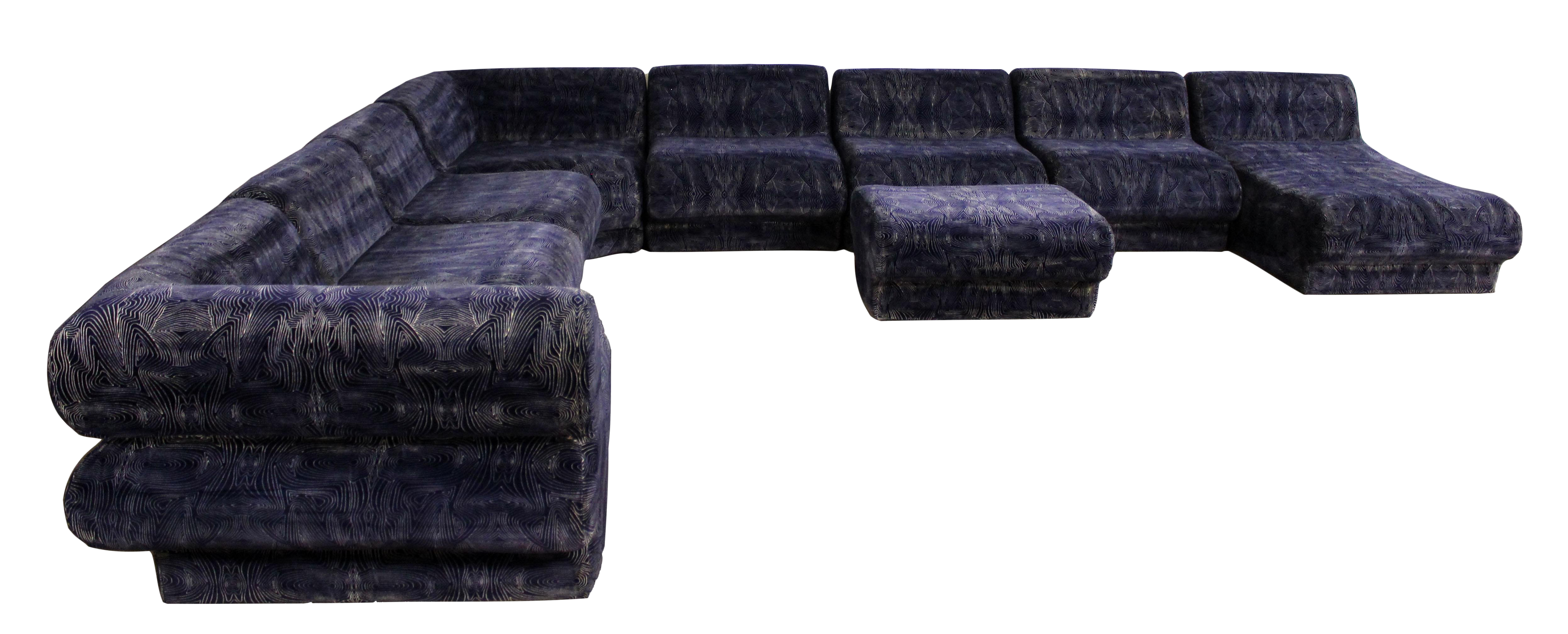 Mid Century Modern 9 Pc Modular Serpentine Blue Velvet Sectional Sofa By Kagan
