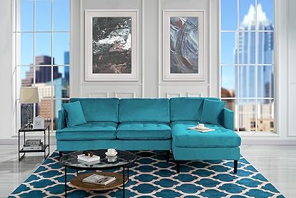 Modern Peacock Blue Velvet Sectional Sofa Damidam Club
