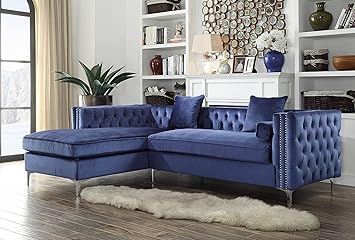Decker 2 Piece Blue Velvet Sectional Sofa In 2019