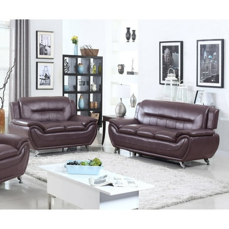 Happy Homes Camden Modern Brown Bonded Leather Sofa And Loveseat Set 2pcs