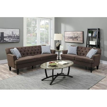Sofa Loveseat Set Living Room Furniture Royal Design Traditional Brown Sofa