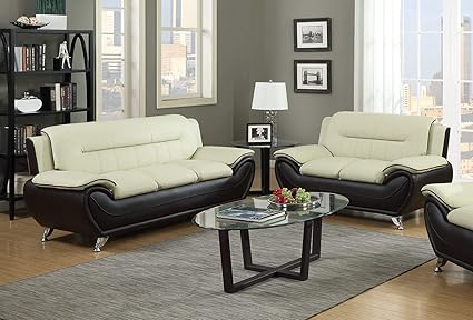 Amazon Com Gtu Furniture 2pc Beige On Brown Sofa Loveseat