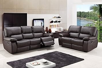 Dominic Modern Brown Faux Leather Reclining Sofa Couch Loveseat Set Living Room