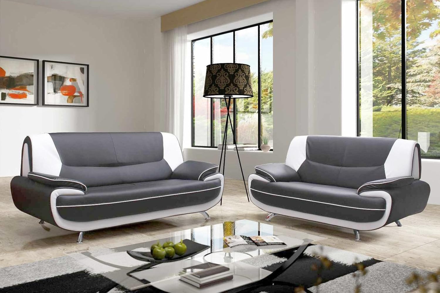 Mobilier Deco Ensemble Canape 3 2 Places Gris Et Blanc