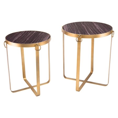 Modern Contemporary Sofa Accent Side End Table Console Set Of 2 Purple Antique Style Gold Printing Glass Steel
