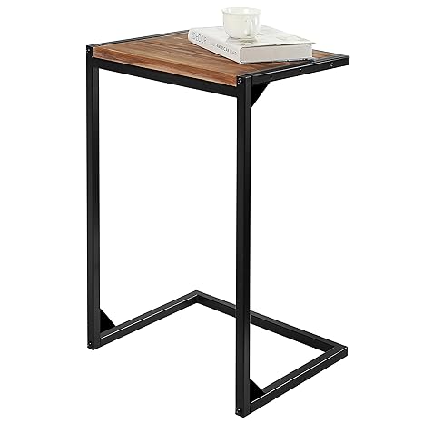 Industrial Style C Shaped Wood Metal Sofa Side Table Modern Urban Living Room End Table