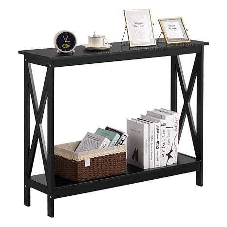 Kealive Sofa Table 2 Tier Wood Console Table With Storage Shelf Occasional Table X Frame Black