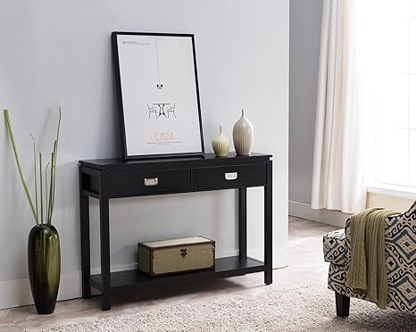 Kings Brand Black Finish Wood Occasional Entryway Console Sofa Table With Storage Shelf 2 Drawers